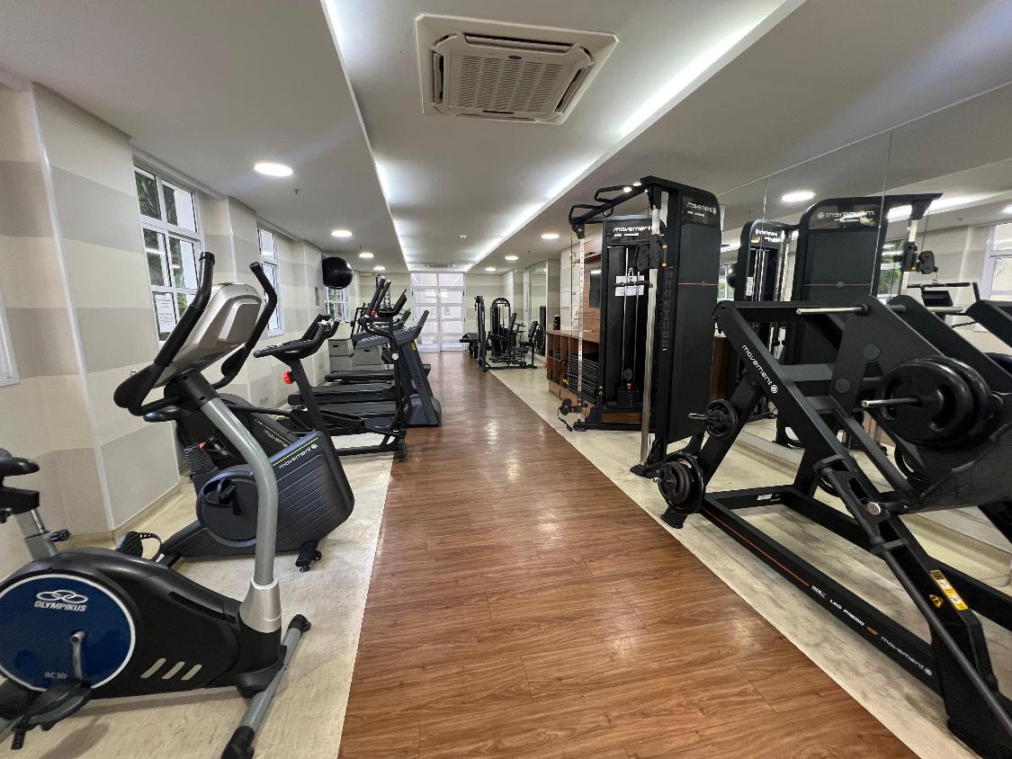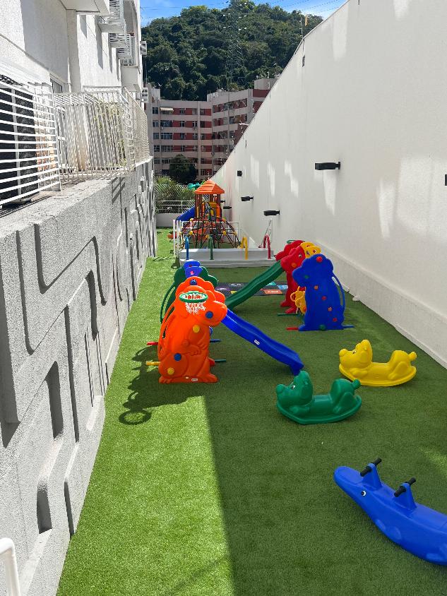 Lazer completo: 3 salões de festa, piscina, sauna, salão de jogos, brinquedoteca, cinema, churrasqueira, mercadinho, parquinho e quadra poliesportiva.